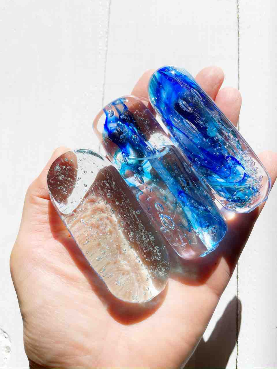 お客様からの指示は、指を入れる空洞のものではなく、円柱状の塊だったのですが、他にも自由に作ってもらって構わないと言うので、タブレット型も作りました。