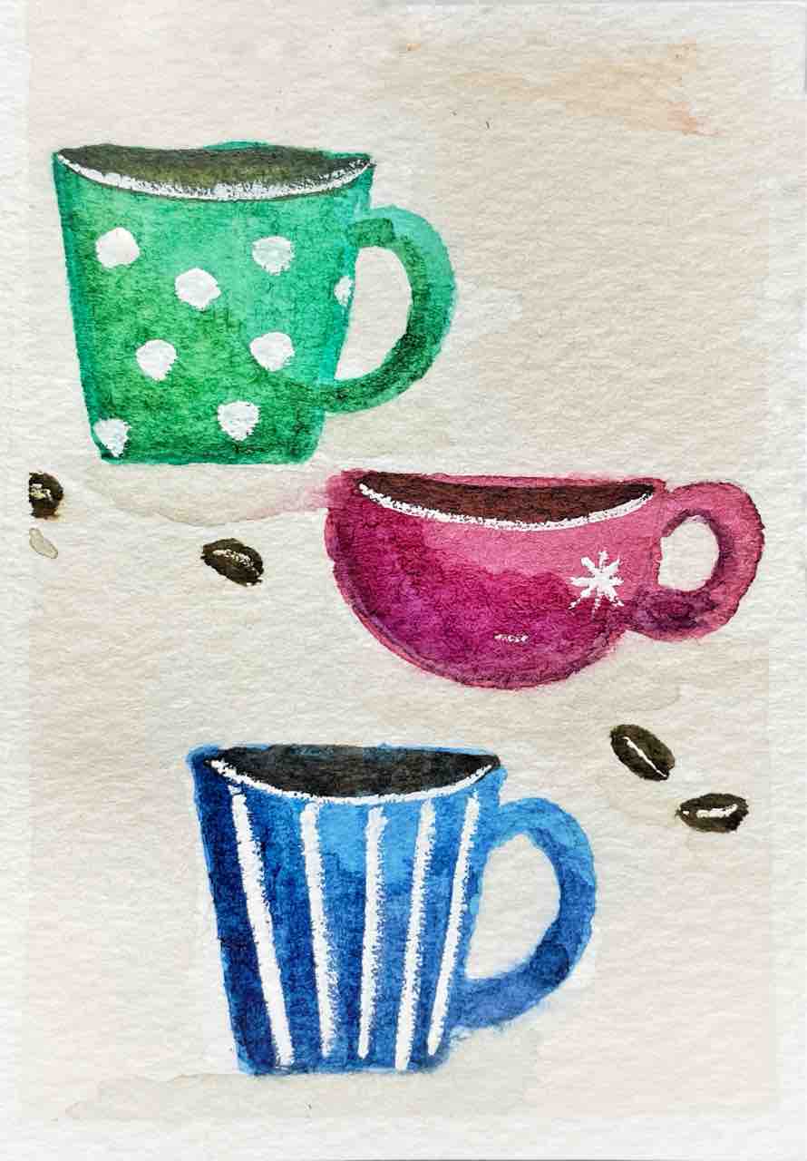 それで、コーヒーモチーフでなにかできないかなと閃いたので、ちょっといたずら描きを。