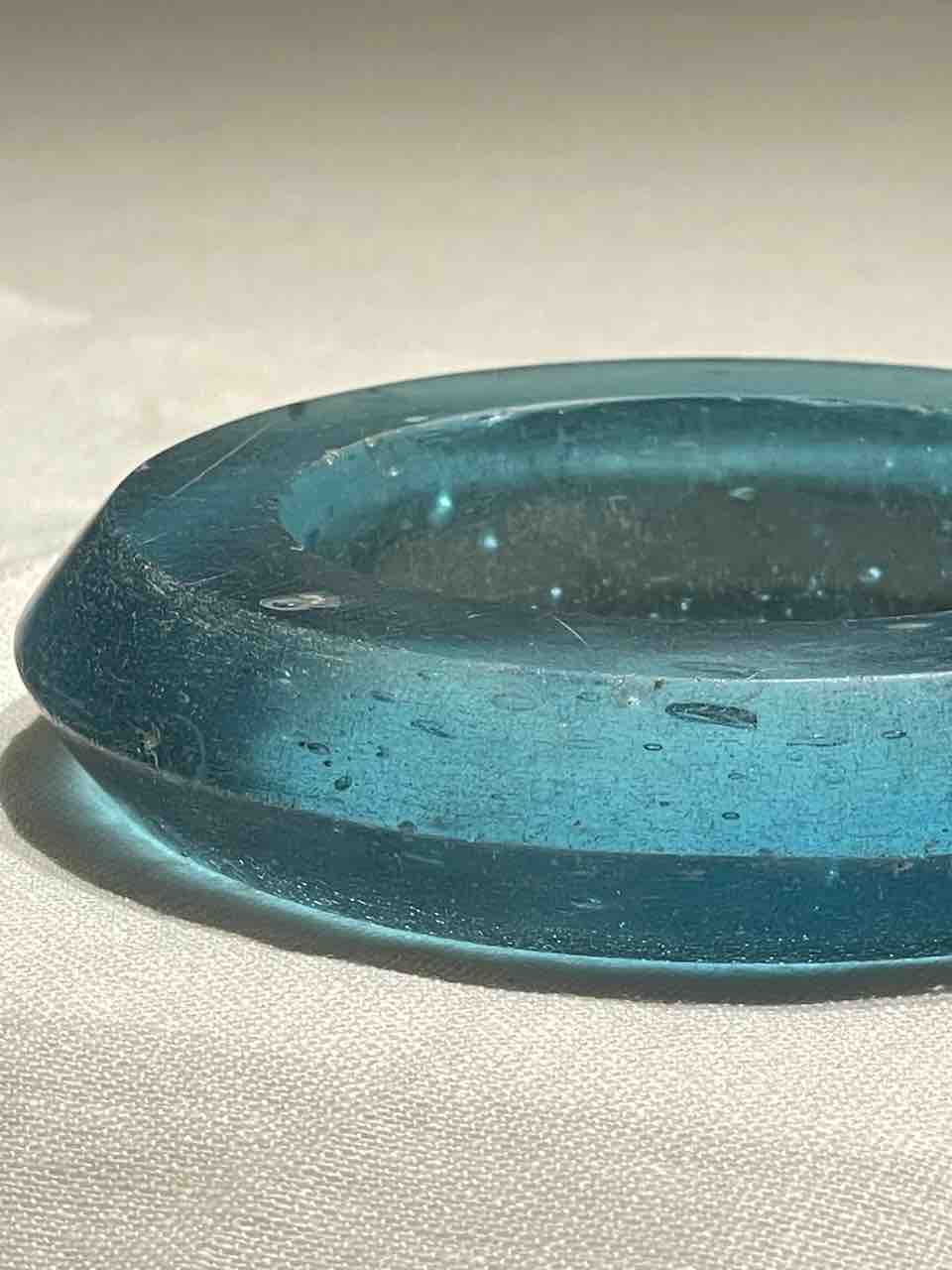 どちらも鉛ガラスで、丸くするのに端と端を繋げて輪っかにして切断している。