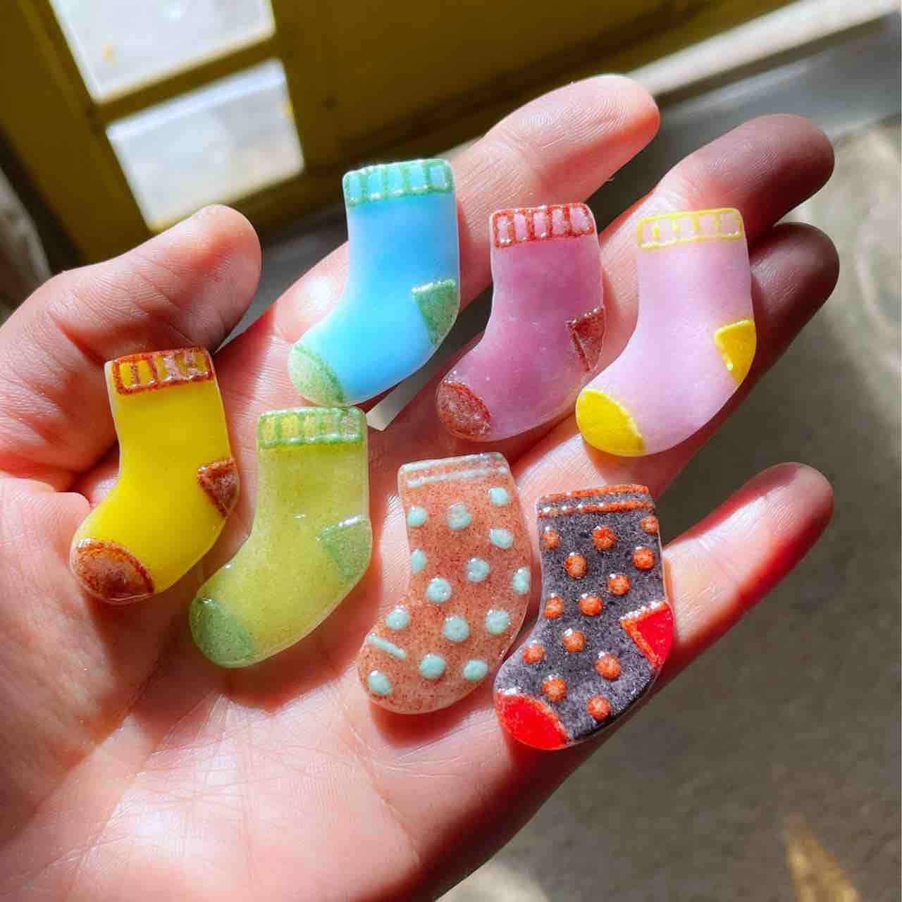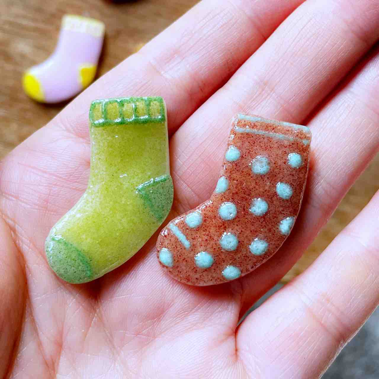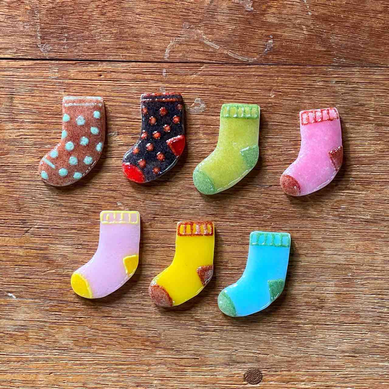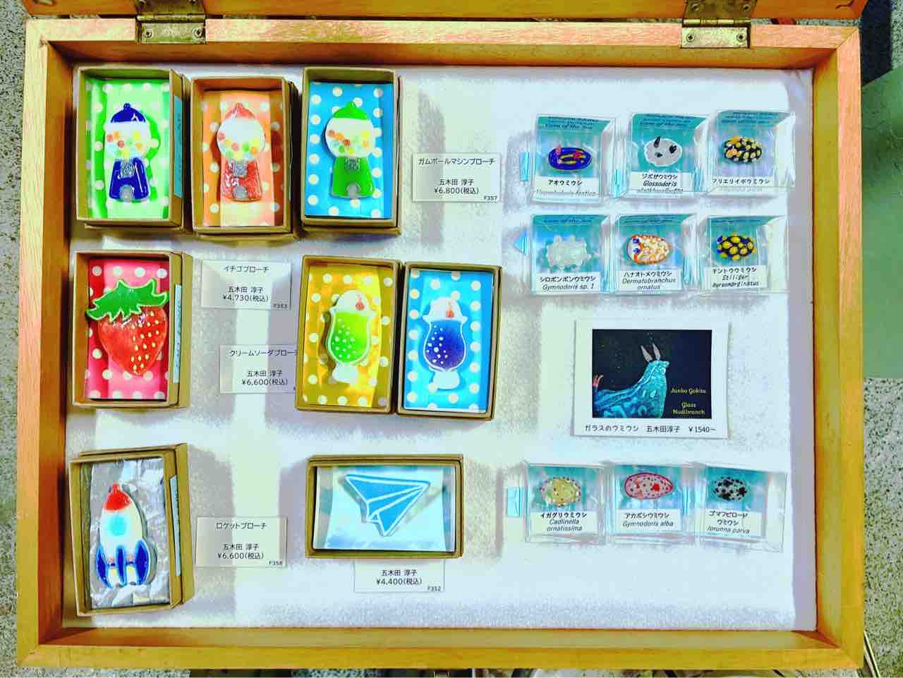西伊豆にちなんだ「夕陽グラス」や「サザエぐい呑み」「ガラスのウミウシ」を始めとして、「小鳥」や「ひこうき雲グラス」「虹色のグラス」など、クリスマスプレゼントにしていただけるような価格帯の作品を詰めました。