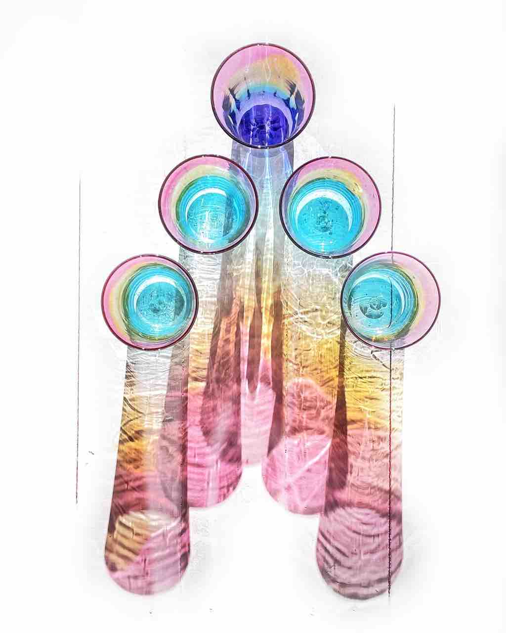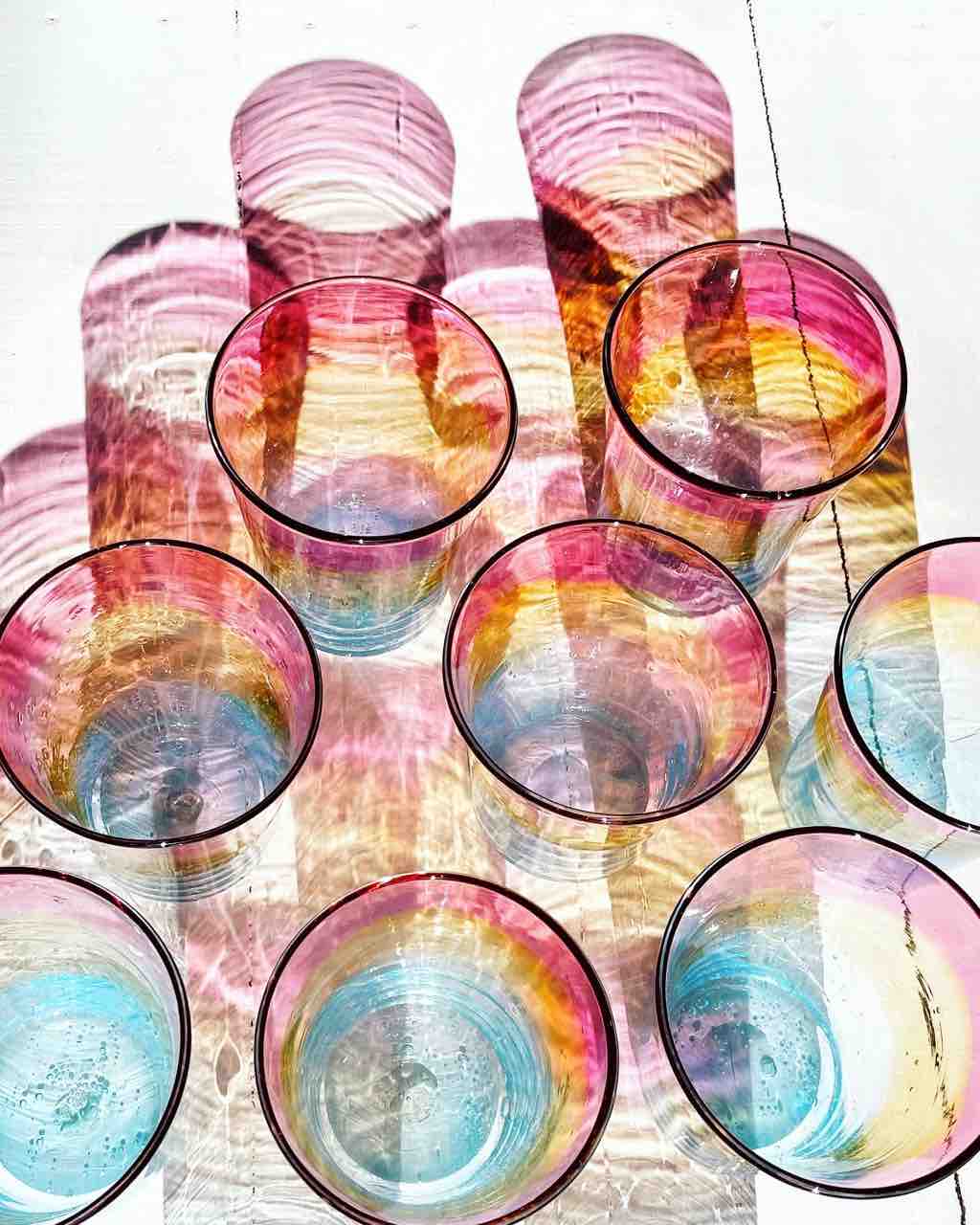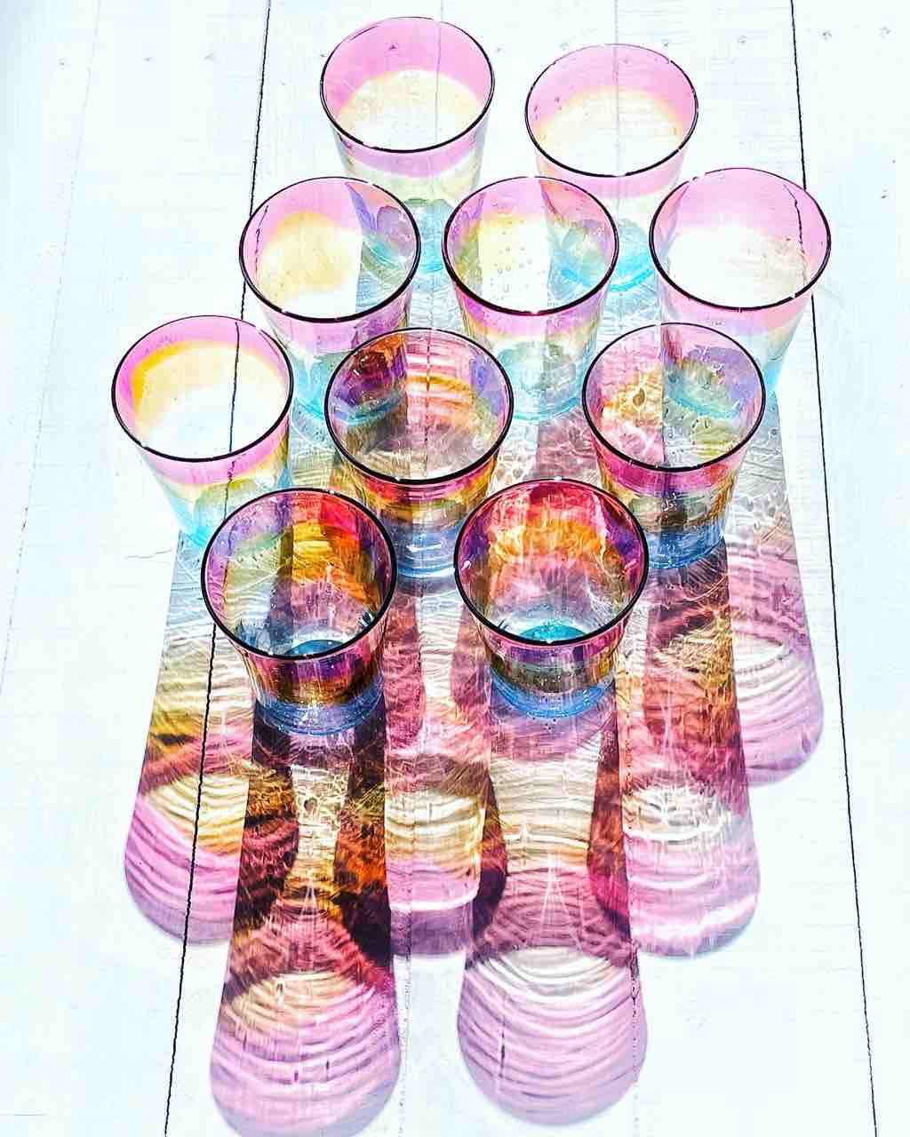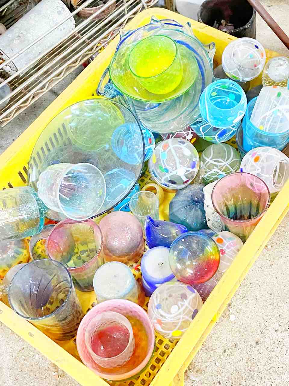 そんな中の英語のオーダーだったので、半信半疑の対応だったのですが、お望みの夕陽グラスと虹色のグラスをいくつか吹いて選んで頂きました。