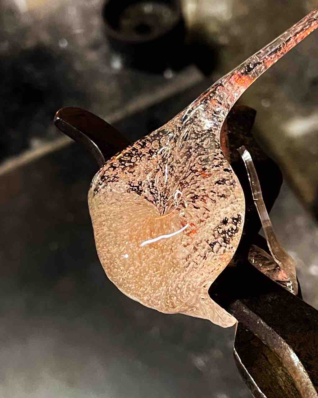 夕方原料投入したので、頃合いを見てガラスを攪拌します。