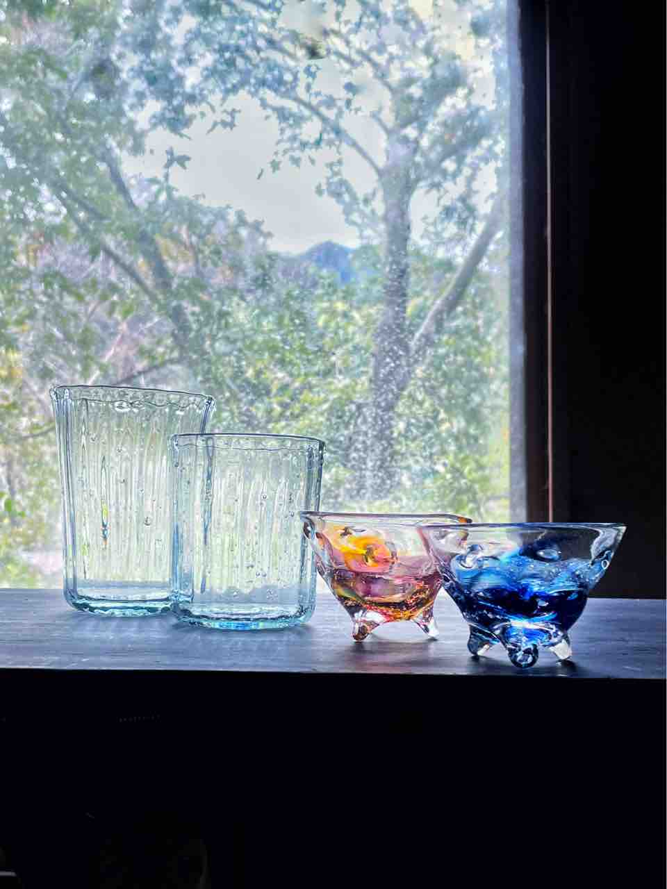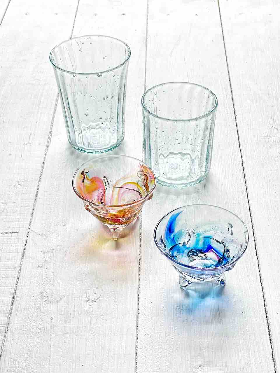 ブリキ色のグラスと潮だまりと陽だまりのぐい呑みは、Twitterのフォロワーさんから。ブリキ色のロックグラスは作りやすいので、気づいたら12個A品が取れました。