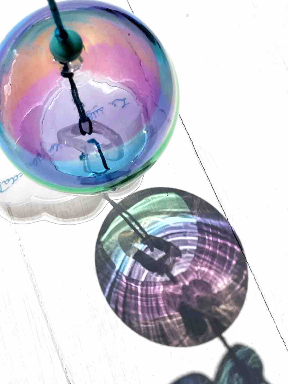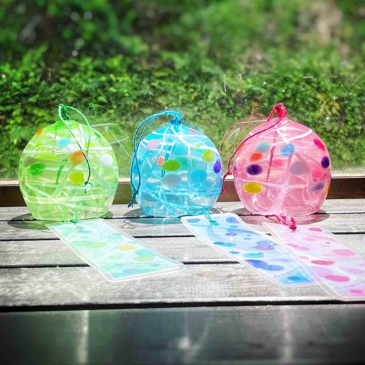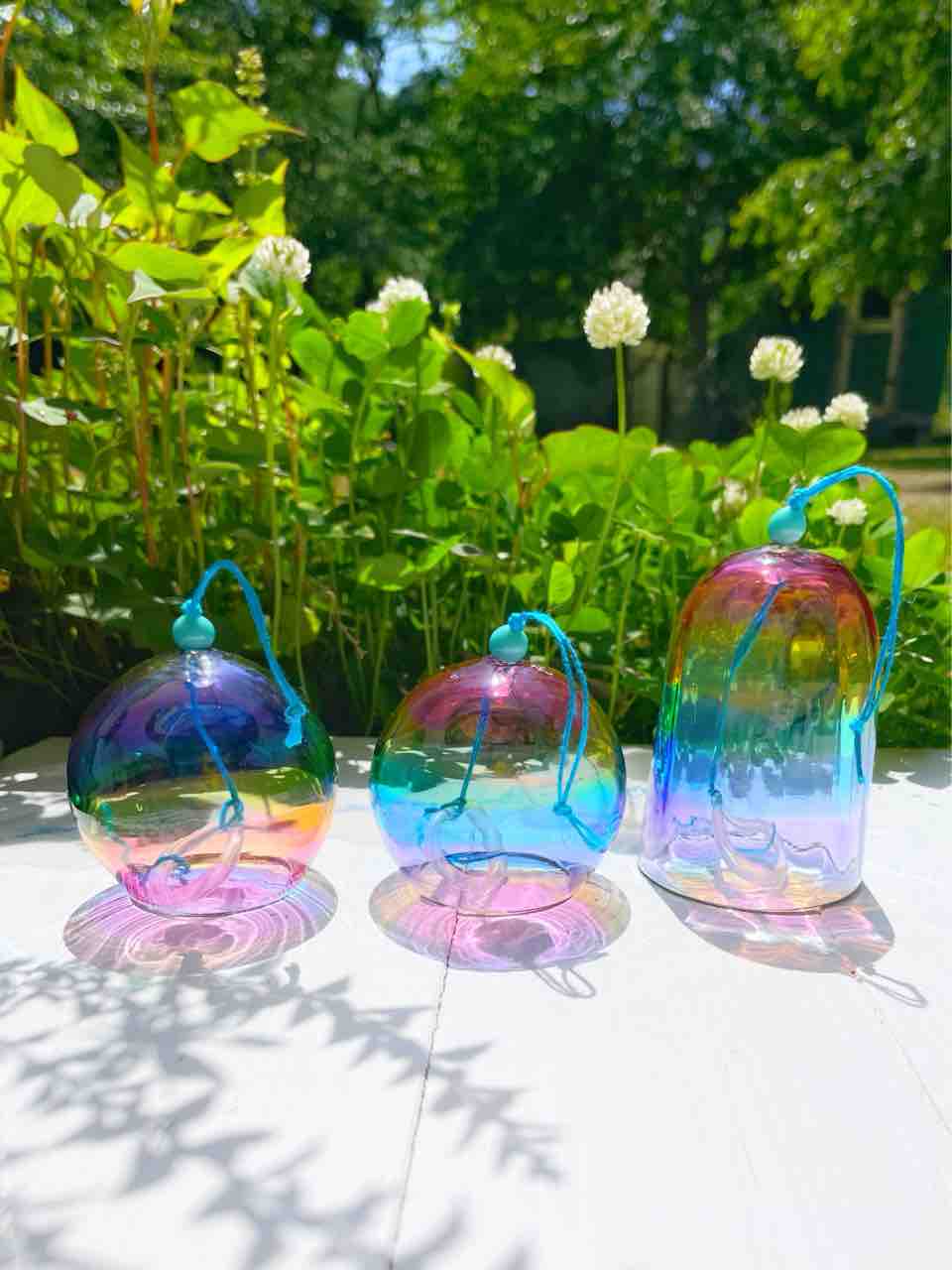 ヨーヨー風鈴3個と虹色の風鈴4個。