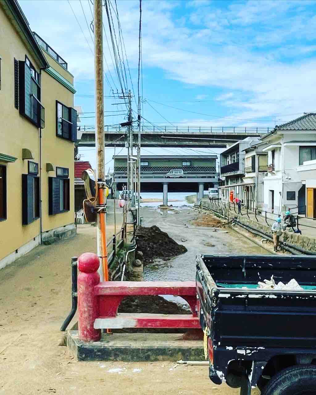 ヘトヘトで災害ボランティアを終え、美しい海岸線を送迎車に揺られて15分。