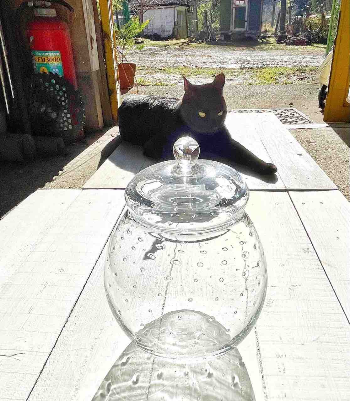最後のひこうき雲グラスをお送りした時撮ってたジジジ。